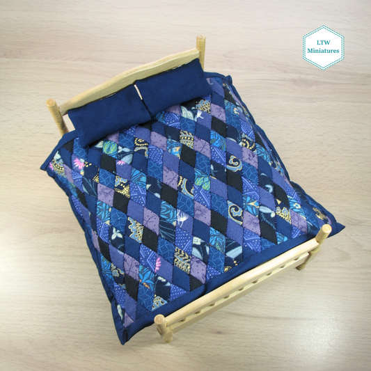 Blue and Purple Double Quilt and Pillows for 1:12 Dollhouse