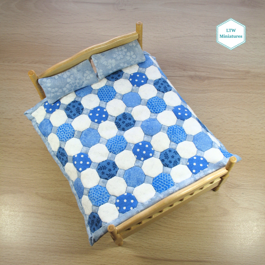 Blue and White Dollhouse Miniature Quilt - 1:12 Scale
