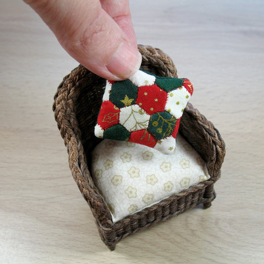 Scrappy 3/8" Hexies Single Quilt and Pillows for 1:12 Dollhouse