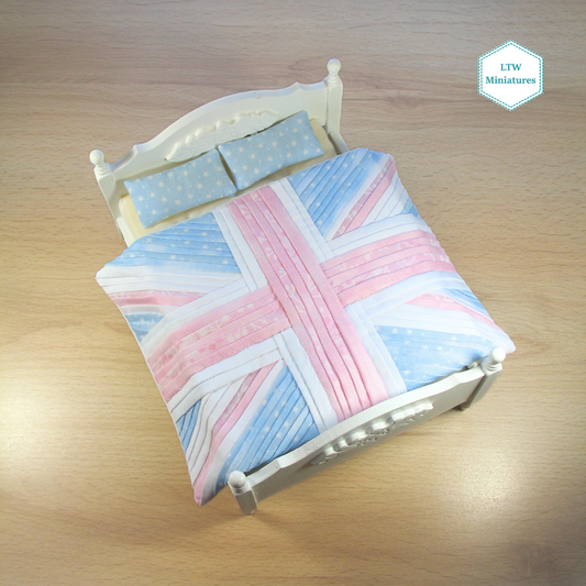 Pastel Union Jack Quilt and Pillows for 1:12 Dollhouse