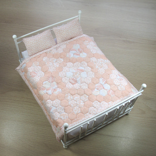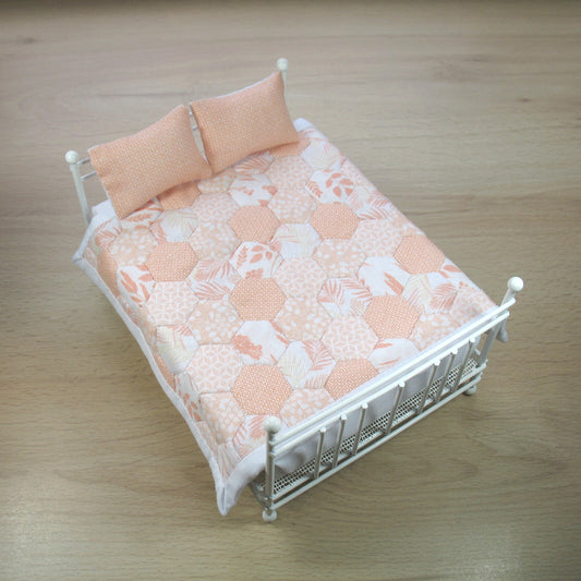 Peachy Hexies Double Quilt and Pillows for 1:12 Dollhouse