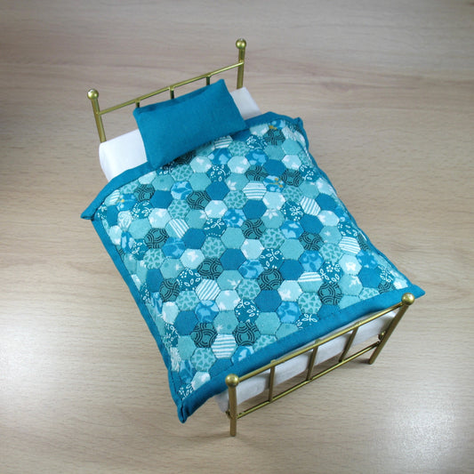 Turquoise Single Quilt and Pillows for 1:12 Dollhouse