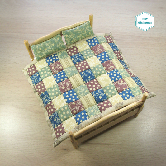 Cosy Beige, Blue, Green, Purple Double Quilt and Pillows for 1:12 Dollhouse