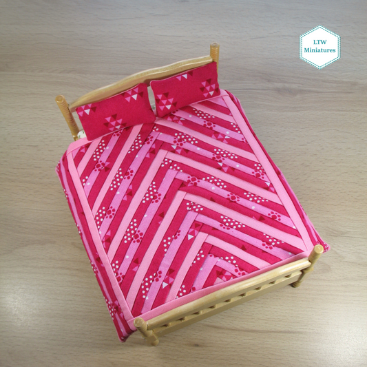 Pink Chevron Dollhouse Miniature Quilt - 1:12 Scale