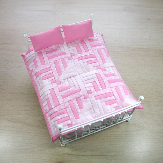 Pink Double Quilt and Pillows for 1:12 Dollhouse