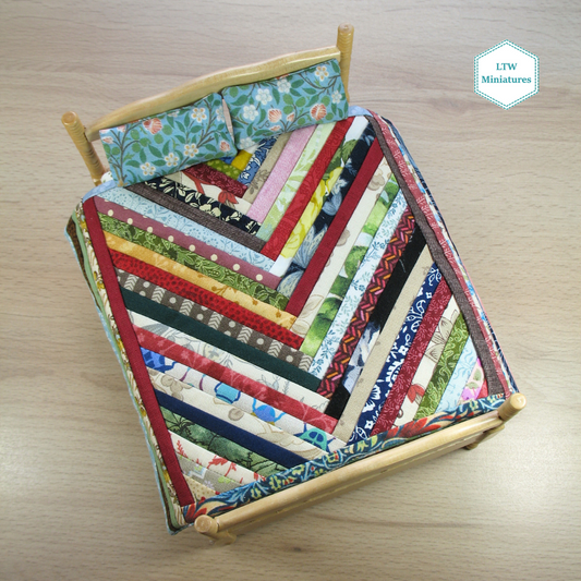 Scrappy Chevron Dollhouse Miniature Quilt - 1:12 Scale